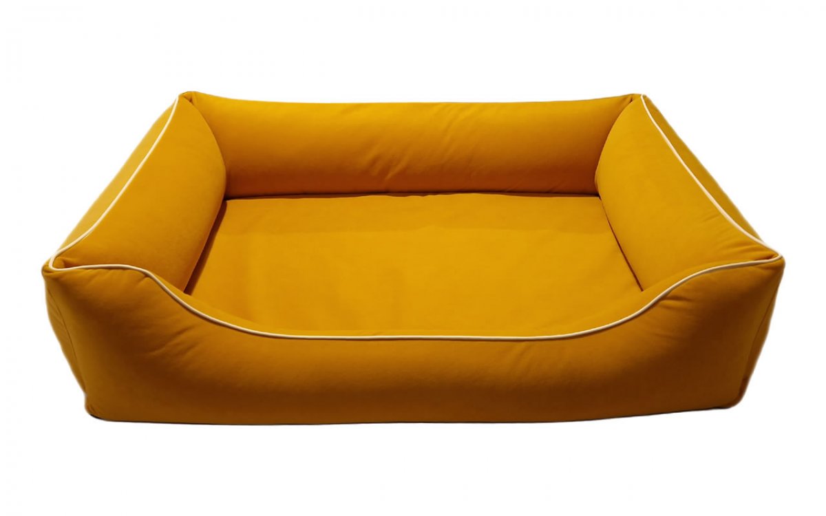 Legowisko dla psa Sofa Barcelona Standard TwinFoam w kolorze żółtym z białym wykończeniem