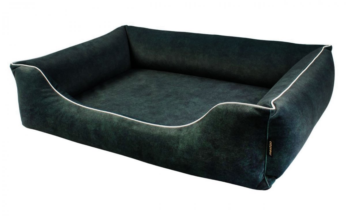 Legowisko dla psa Sofa Barcelona Orthopedic w kolorze zielonym z białym wykończeniem