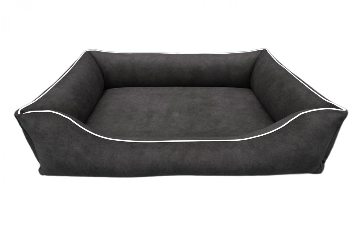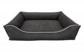 Legowisko dla psa Sofa Barcelona Orthopedic w kolorze ciemnoszarym z białym wykończeniem