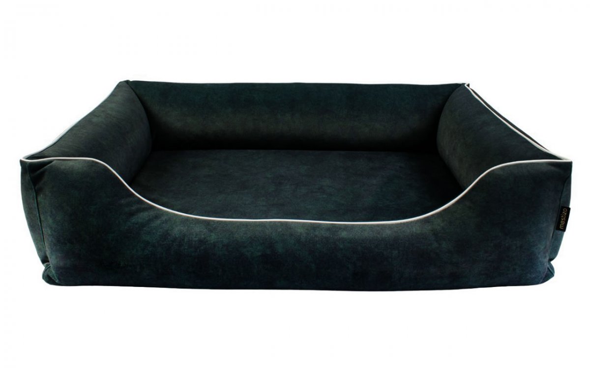 Legowisko dla psa Sofa Barcelona Orthopedic w kolorze zielonym z białym wykończeniem