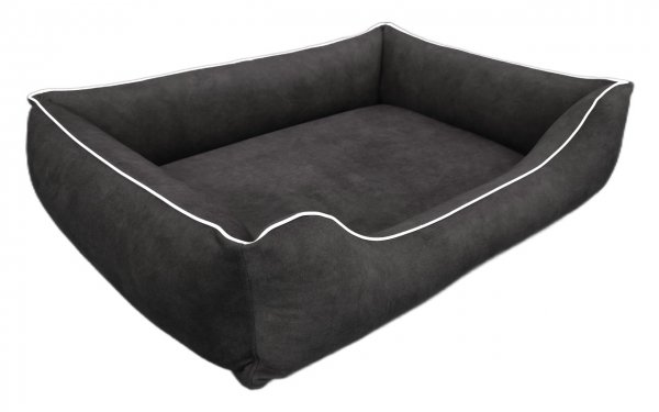 Legowisko dla psa Sofa Barcelona Orthopedic w kolorze ciemnoszarym z białym wykończeniem